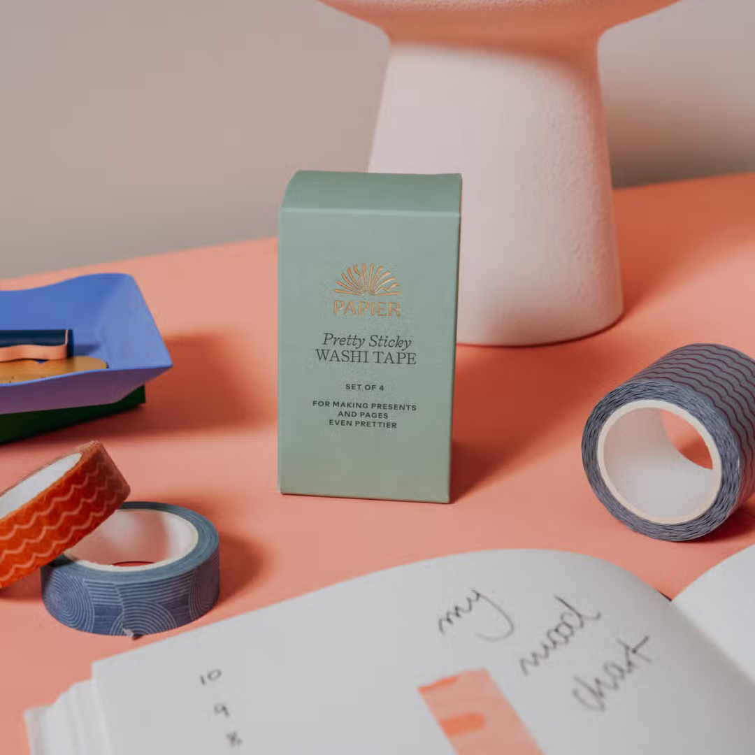 Let’s stick together. This washi tape makes presents and pages even prettier. Use it for bullet journaling, scrapbooking, wrapping gifts or sticking up photos (it won't leave a residue or peel off paint). Each set of four features different prints, with three narrow rolls of tape and one wider one. It's truly tape to treasure.