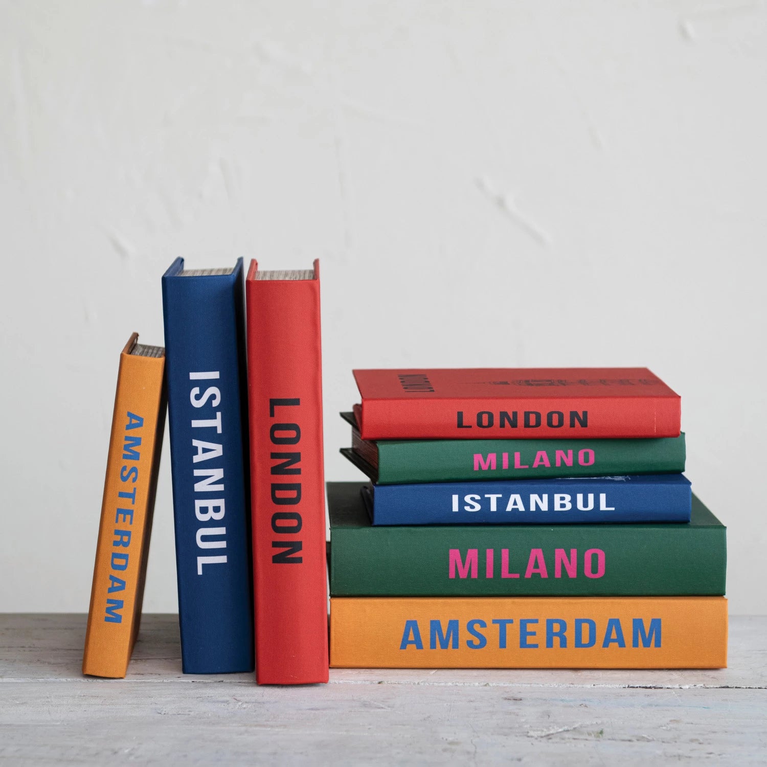 These enchanting and graceful MDF and canvas book storage boxes come as a charming set of two; "All The Little Things" and "The Garden Guidebook", "New England Landscapes" and "Bird and Feather", or "A Well Dressed Home" and "A Guide to Bird Watching", "Sweet Pea" and "Poppy". Or choose from brightly colored City Books, including: Amsterdam, Milano, London or Instanbul. These sets add a touch of nostalgia and splendor to any bedroom, living room, entryway, or office. And they flawlessly complement a wide range of design themes.