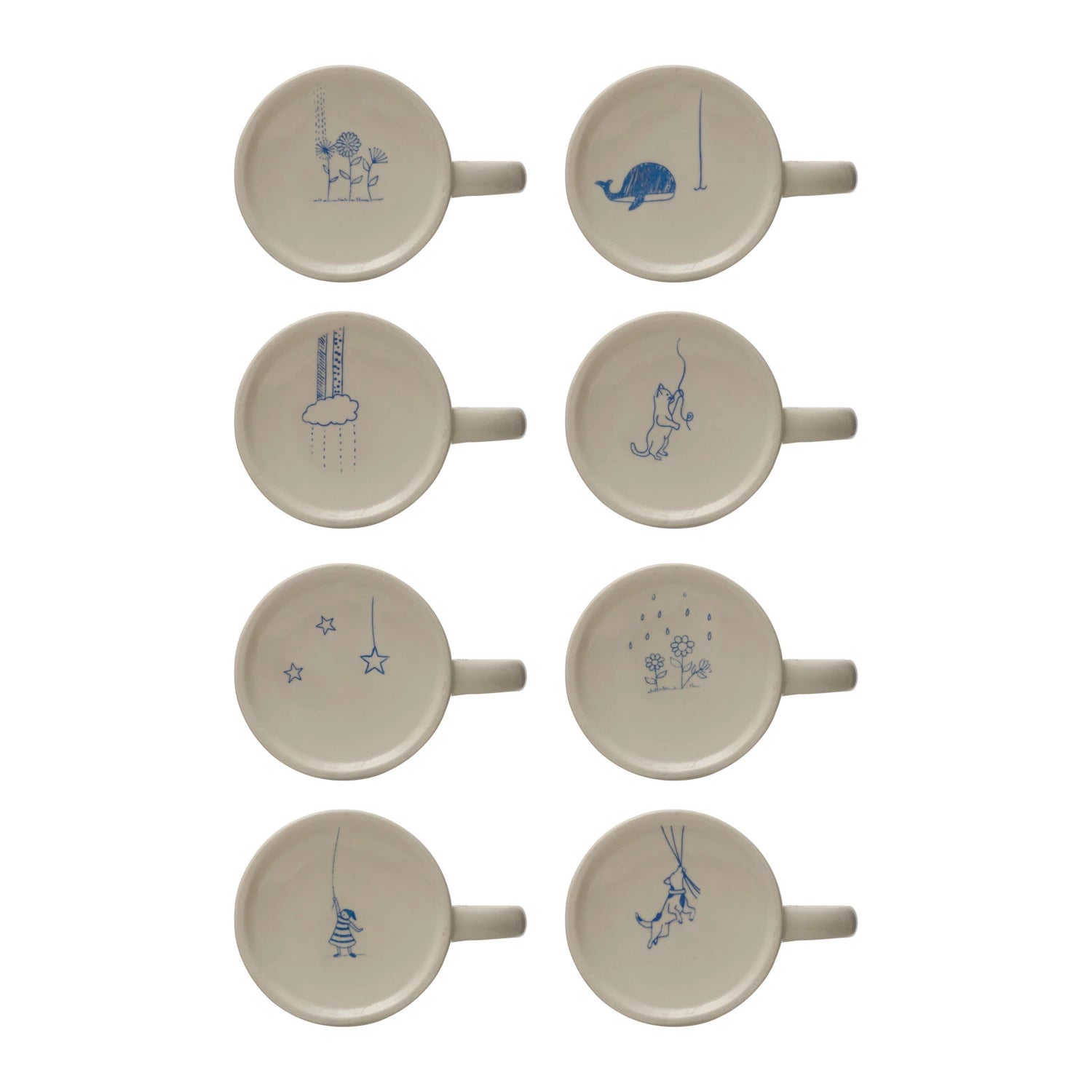 How fun are these new whimsical coffee mugs?  Each style continues it's design on the bottom of the mug.  Choose from 8 styles!