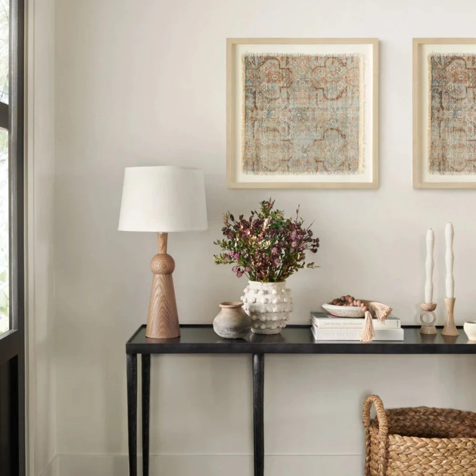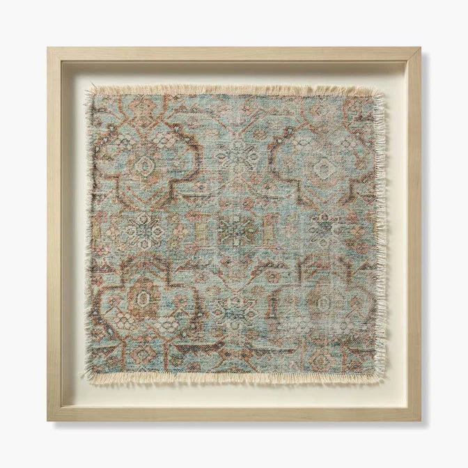 Timeless design and printed textiles are combined to create sophisticated framed wall art. The soft color palette and mix of distressed and traditional-inspired motifs bring a vintage sophistication to any décor space.